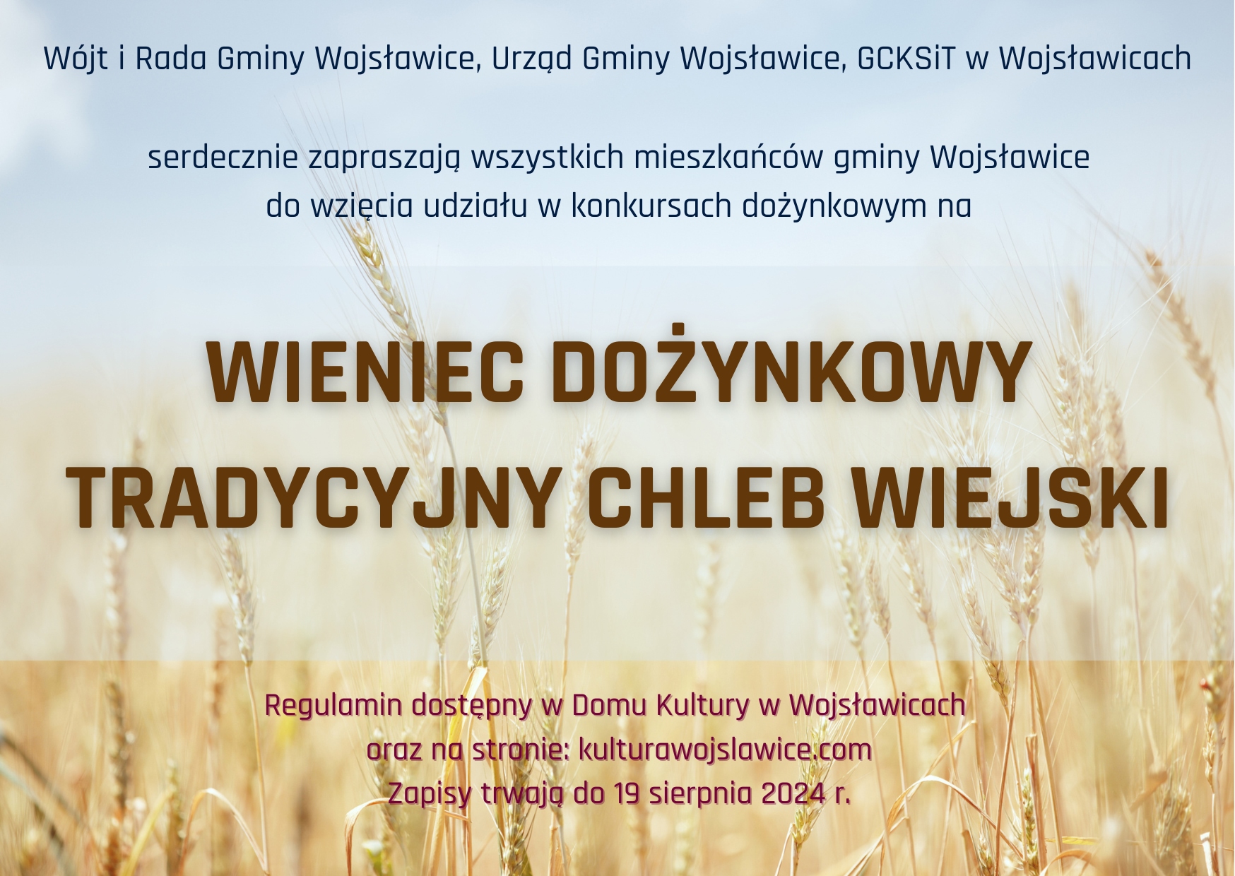 Zapraszamy serdecznie wszystkich mieszkańców gminy Wojsławice do wzięcia udziału w konkursach dożynkowych.Regulaminy znajdują się w załącznikach.