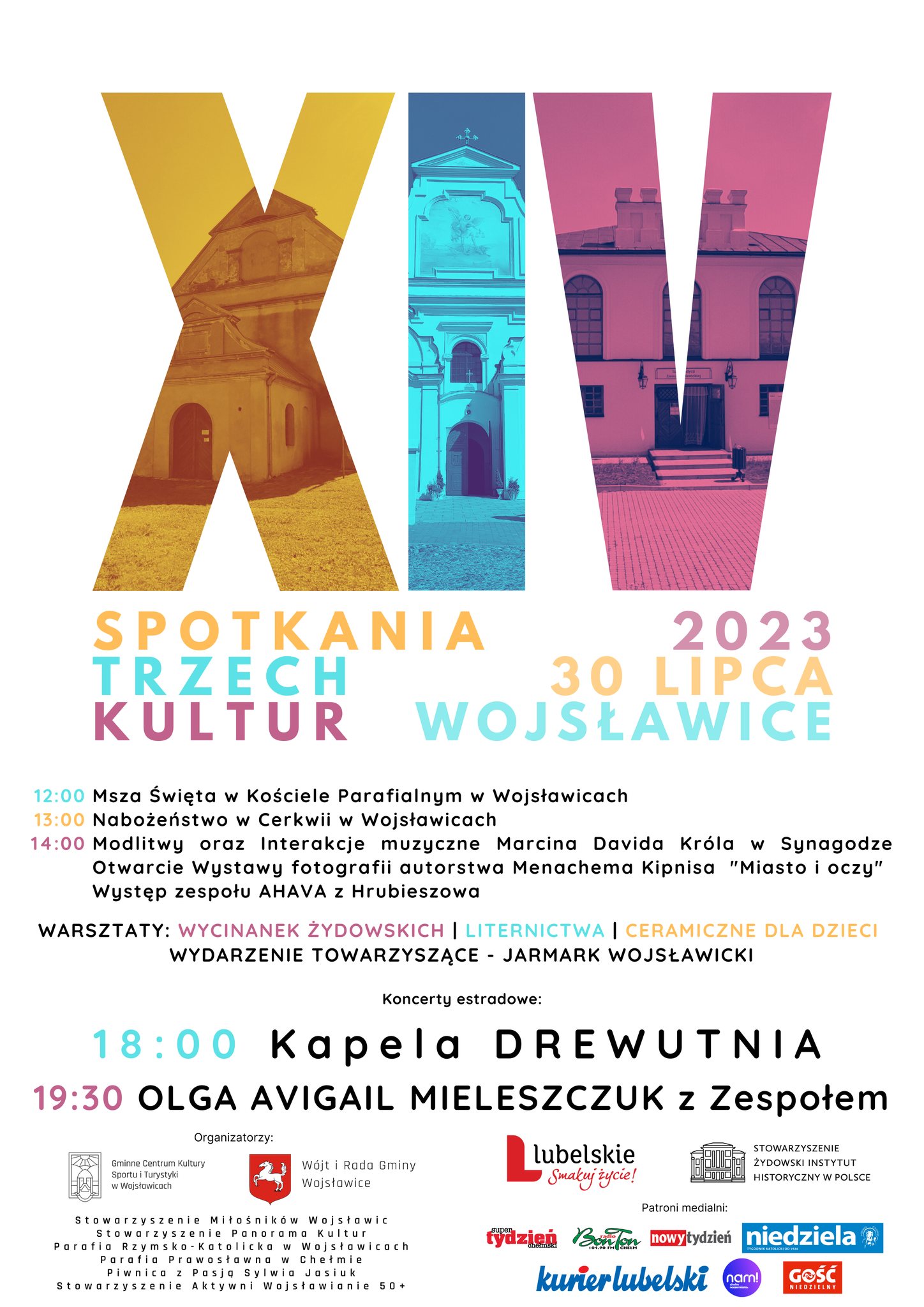 Wojsławice są miasteczkiem, w którym żyli w zgodzie przedstawiciele trzech kultur: polskiej, ukraińskiej i żydowskiej, tworząc dziedzictwo kulturowe małej ojczyzny. Dlatego pielęgnując lokalną historię serdecznie zapraszamy na XIV Edycję Festiwalu Spotkania Trzech Kultur, który odbędzie się 30 lipca 2023 r. w Wojsławicach. Podczas wydarzenia odbędą się liczne wydarzenia nawiązujące do każdej z kultur i religii które niegdyś można było spotkać w Wojsławicach, m.in. nabożeństwa, koncerty, wystawy.