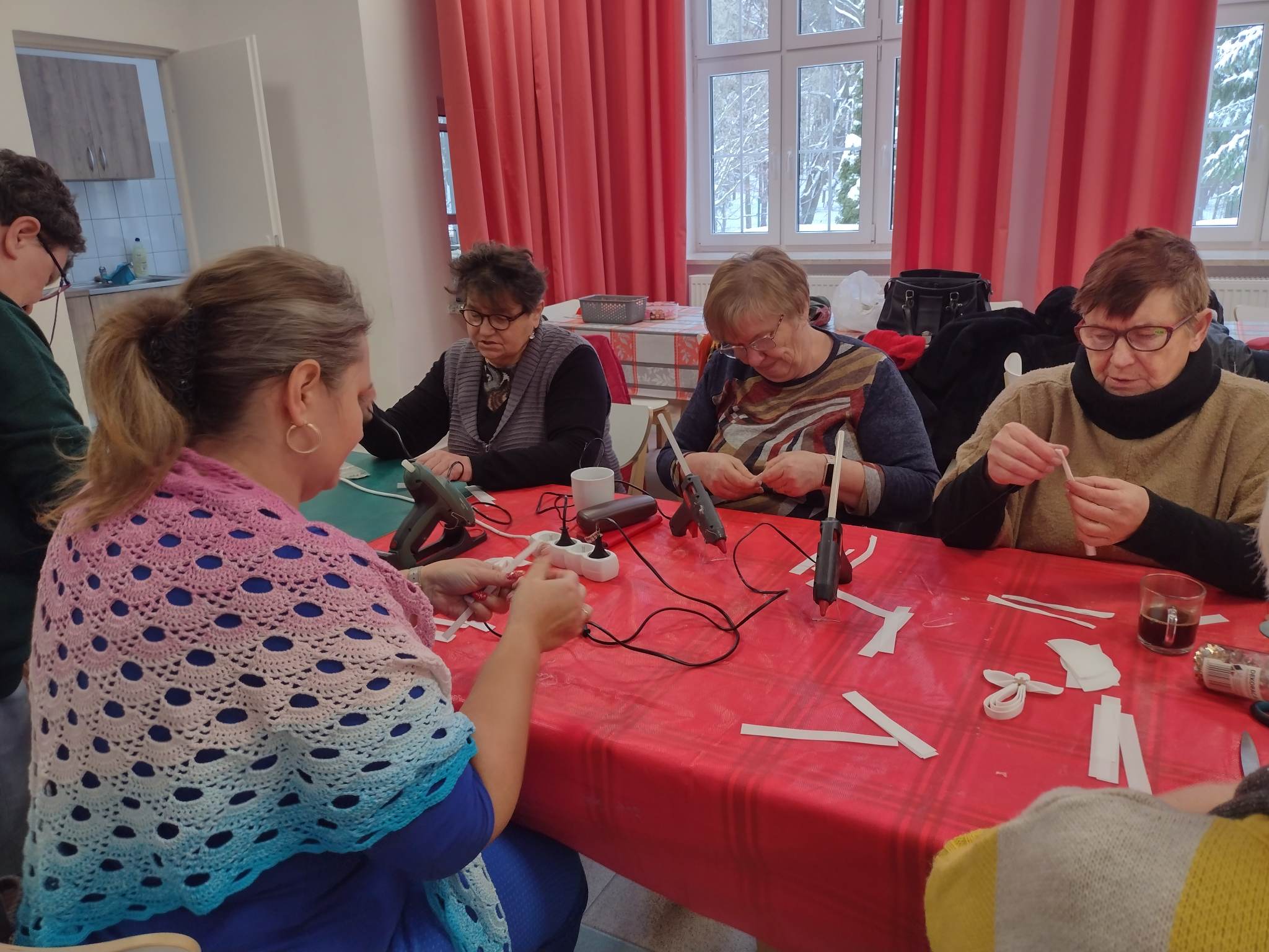 Mimo trudnych warunków pogodowych uczestniczki dzielnie stawiły się na zajęciach, tak więc przedstawiamy krótką fotorelację z Warsztatów Tworzenia Tradycyjnych Ozdób Bożonarodzeniowych z Foamiranu i Sznurka, które odbyły się w zeszłą sobotę w Ośrodku Trzech Kultur w Majdanie Ostrowskim.