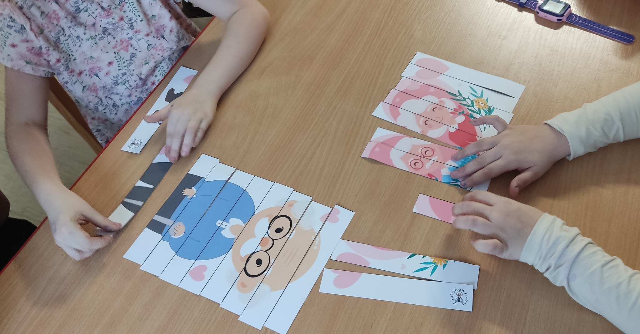 Dzieci wysłuchały kolejno wierszy „Babcia Misia" oraz „Niewzykły Dziadek" Agnieszki Nożyńskiej-Demaniuk .Następnie wykonały laurki w kształcie serca.