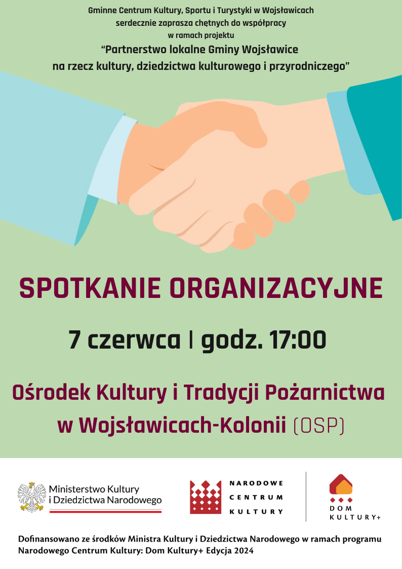 Dlatego GCKSiT w Wojsławicach zaprasza do współpracy osoby zainteresowane dalszym rozwojem naszej lokalnej społeczności w ramach projektu "Partnerstwo lokalne Gminy Wojsławice na rzecz kultury, dziedzictwa kulturowego i przyrodniczego".